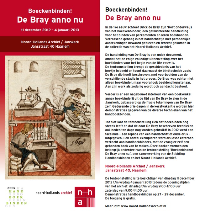 Van de handgebonden boeken van De Bray werd van 11 december 2012 tot 4 januari 2013 een expositie gehouden in het Noord-Hollands Archief te Haarlem, zie onderstaande flyer.